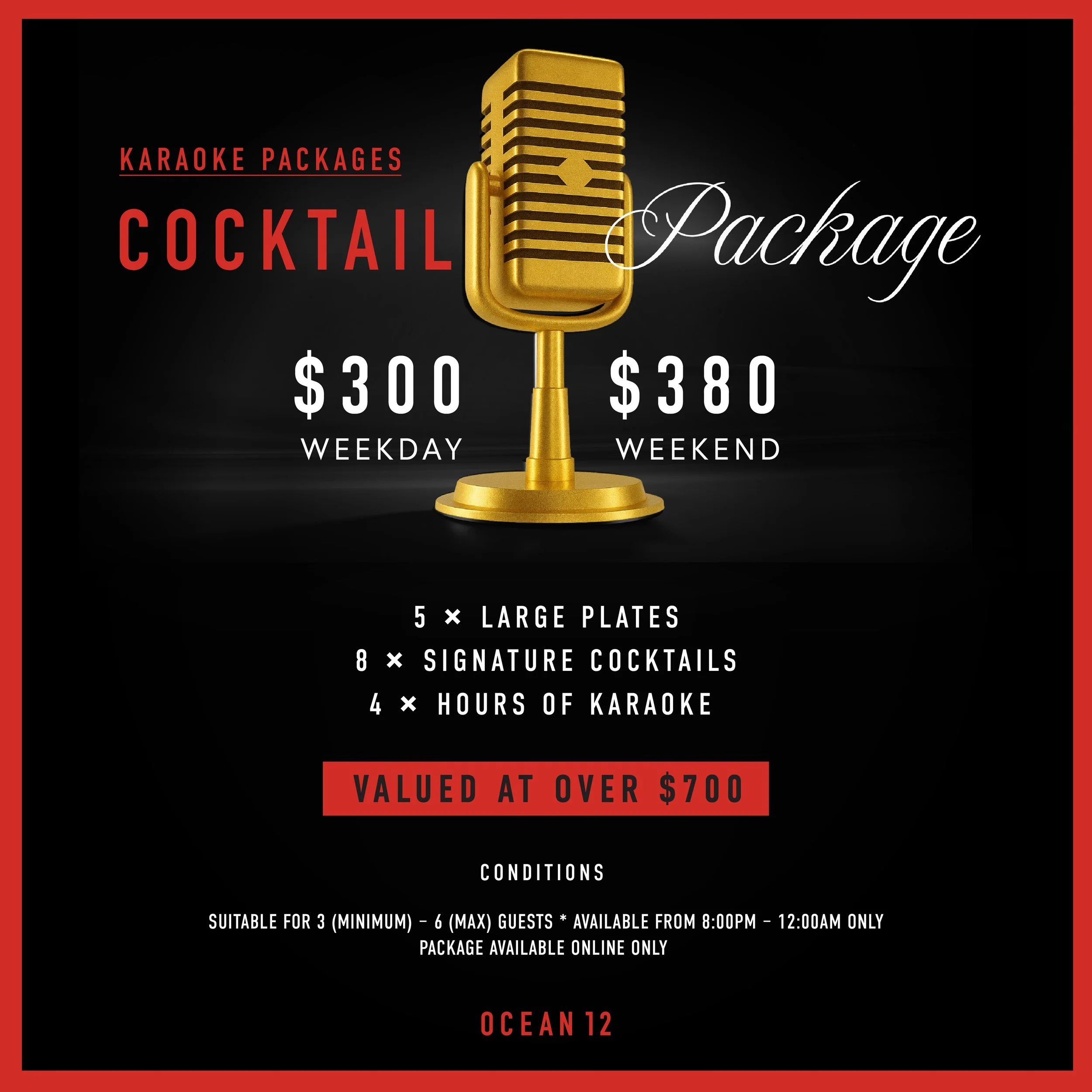 Discover over 30 exclusive karaoke suites at Ocean 12, each meticulously designed to indulge your senses with immersive sound, elegant interiors, bold Asian-fusion flavours and a refined drink selection.
